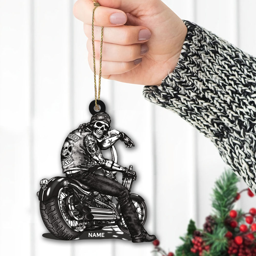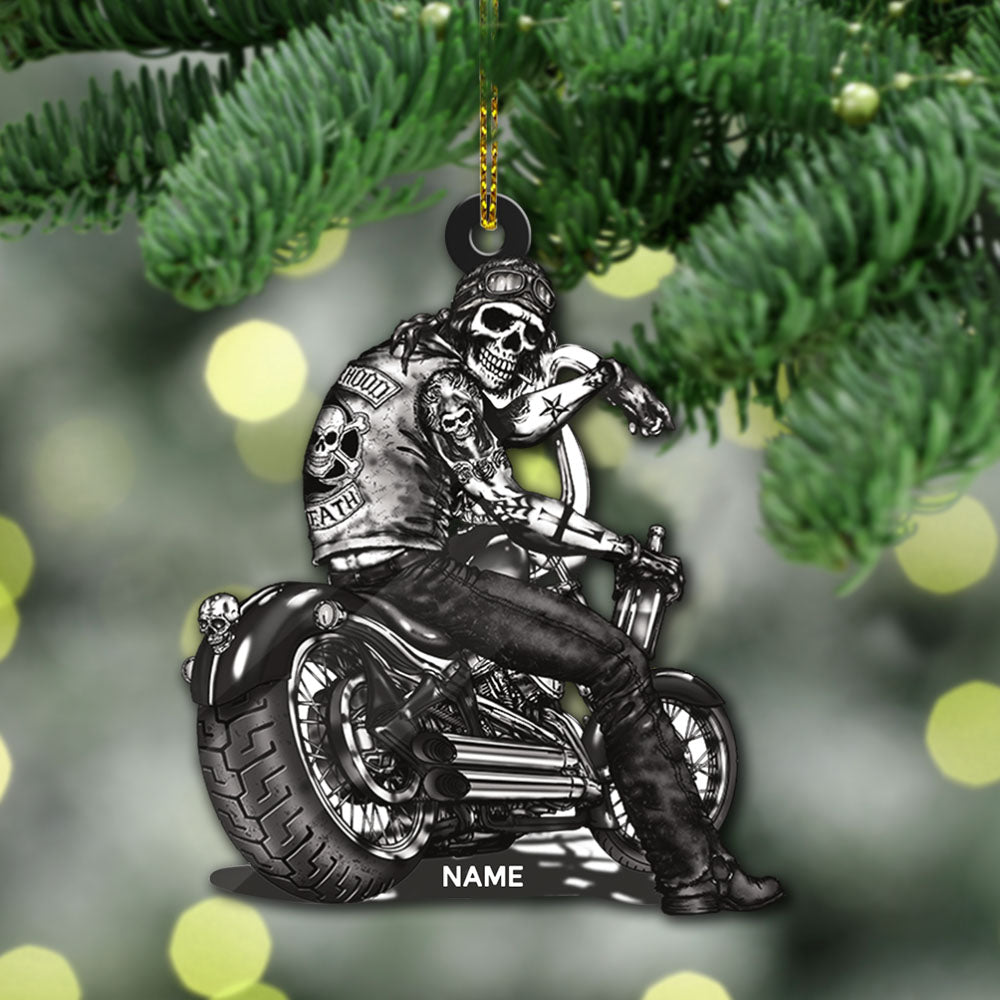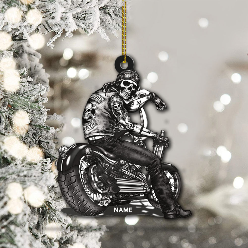 Biker Skull Art Personalized Acrylic Ornament 2 Sides Print, Made By Acrylic And The 2 sides Are The Same