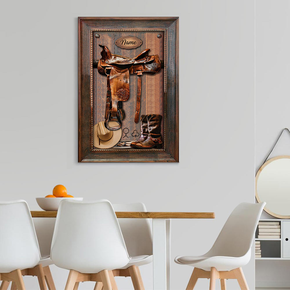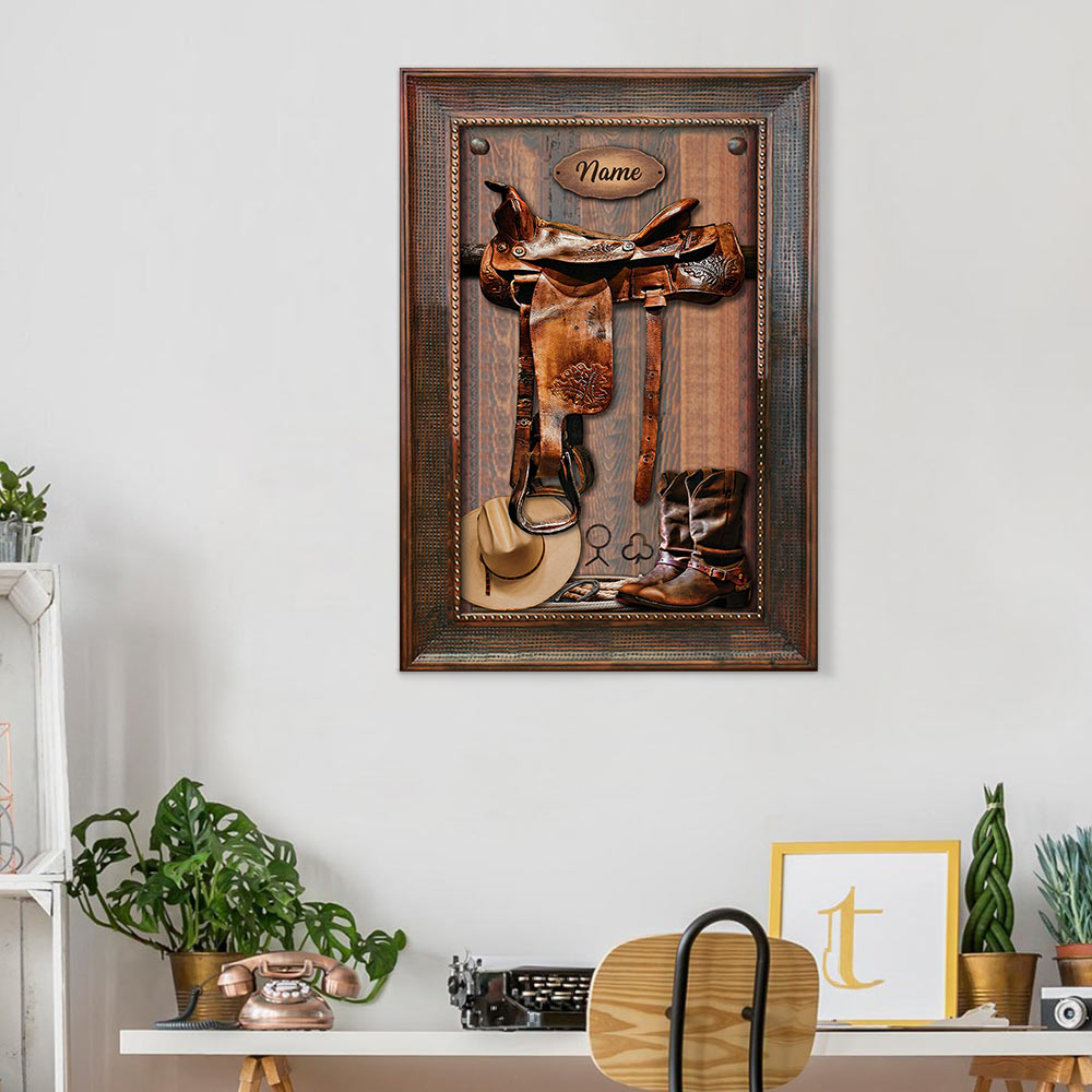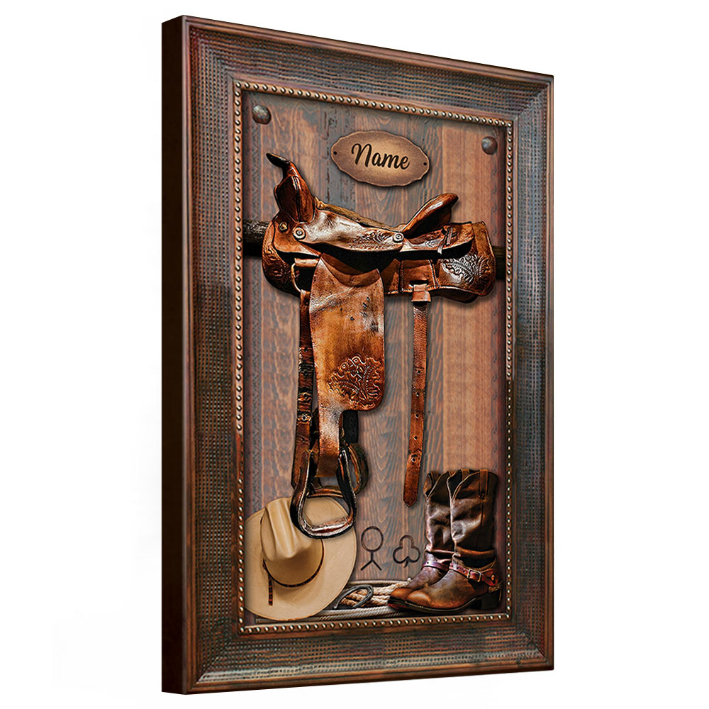 Canvas Horse Saddle Frame Print, Personalized Canvas For Horse Lovers, Cowboy, Cowgirl, Name Can Be Changed
