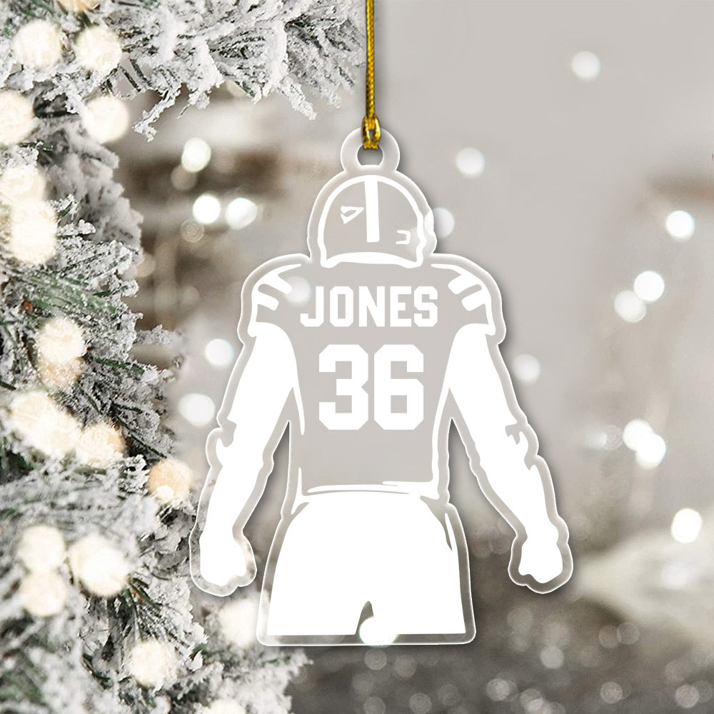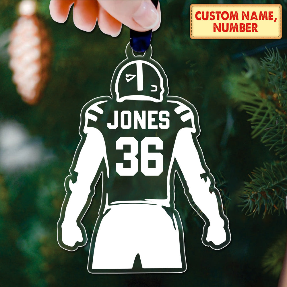 Engraved Acrylic Football Player Ornament Personalized Football Ornament 2 Sides Print, DO99, Made By Acrylic And The 2 Sides Are The Same