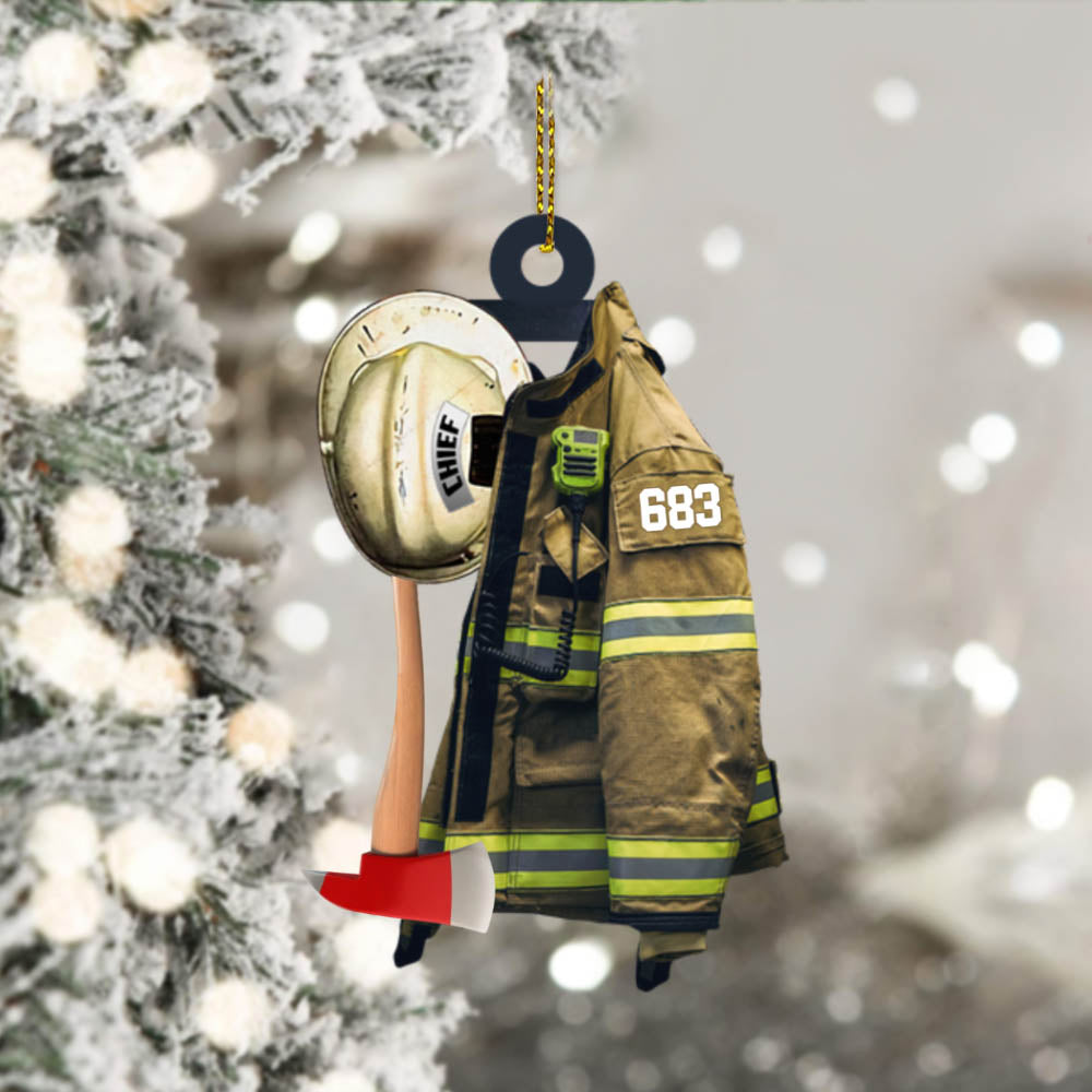 Firefighter Armor Custom Shaped Acrylic Ornament Two Sides Print Vr2, Made By Acrylic And The 2 Sides Are The Same