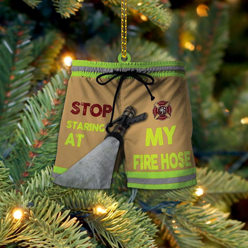 Firefighter Swim Trunks Personalized Acrylic Ornament, Made By Acrylic And The 2 Sides Are The Same