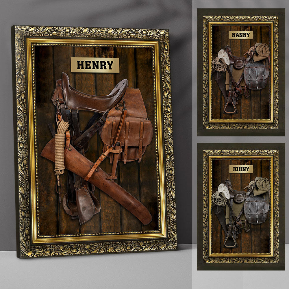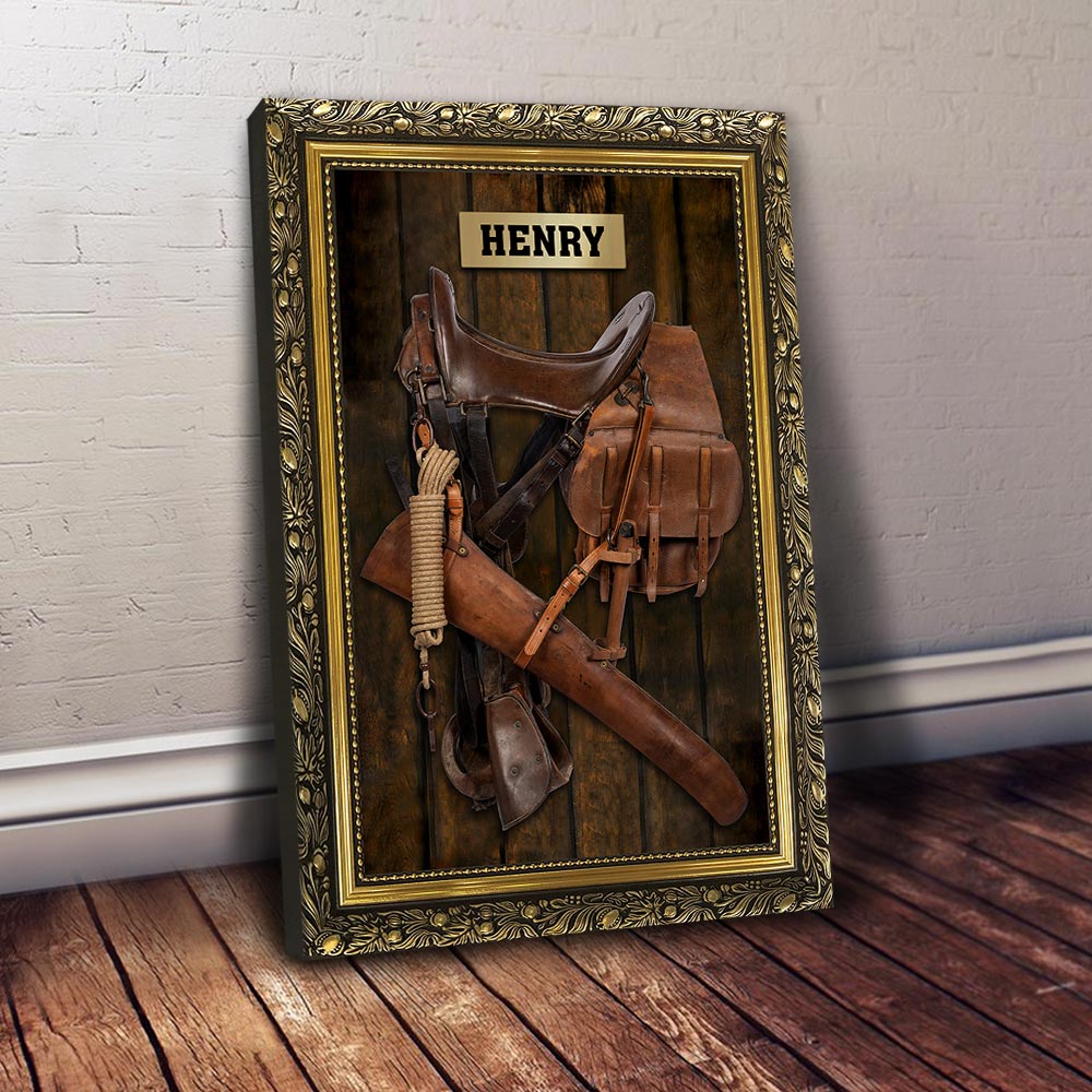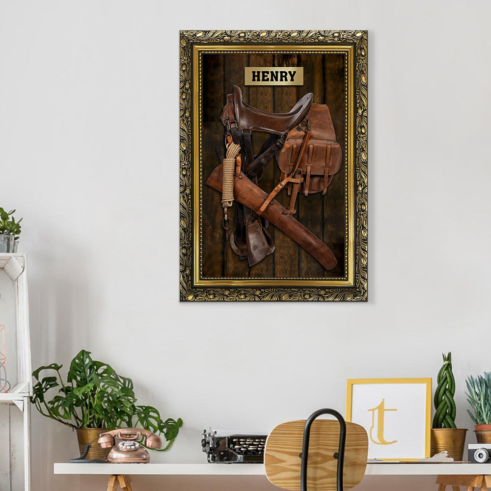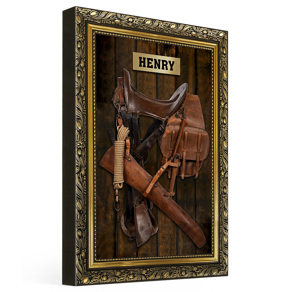 Horse Saddle Frame, Personalized Canvas For Horse Lovers, Cowboy, Cowgirl, Name & Saddle Color Can Be Changed