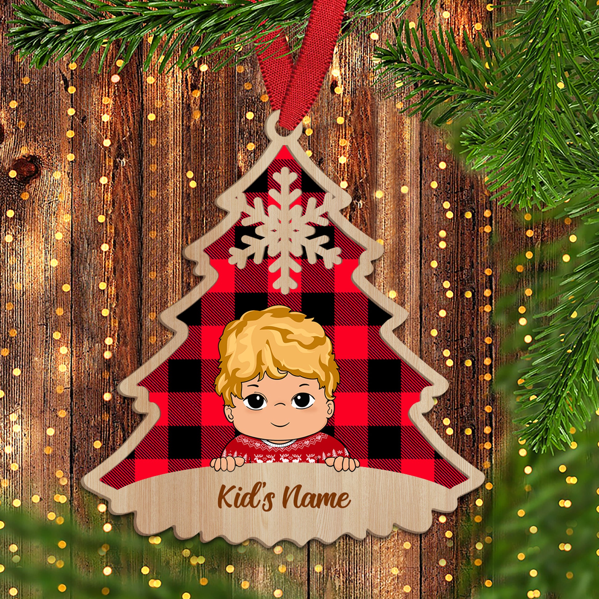 Kid Christmas Tree Personalized Shaped Wood Ornament For Kid From Family Member, HN98, TRNA