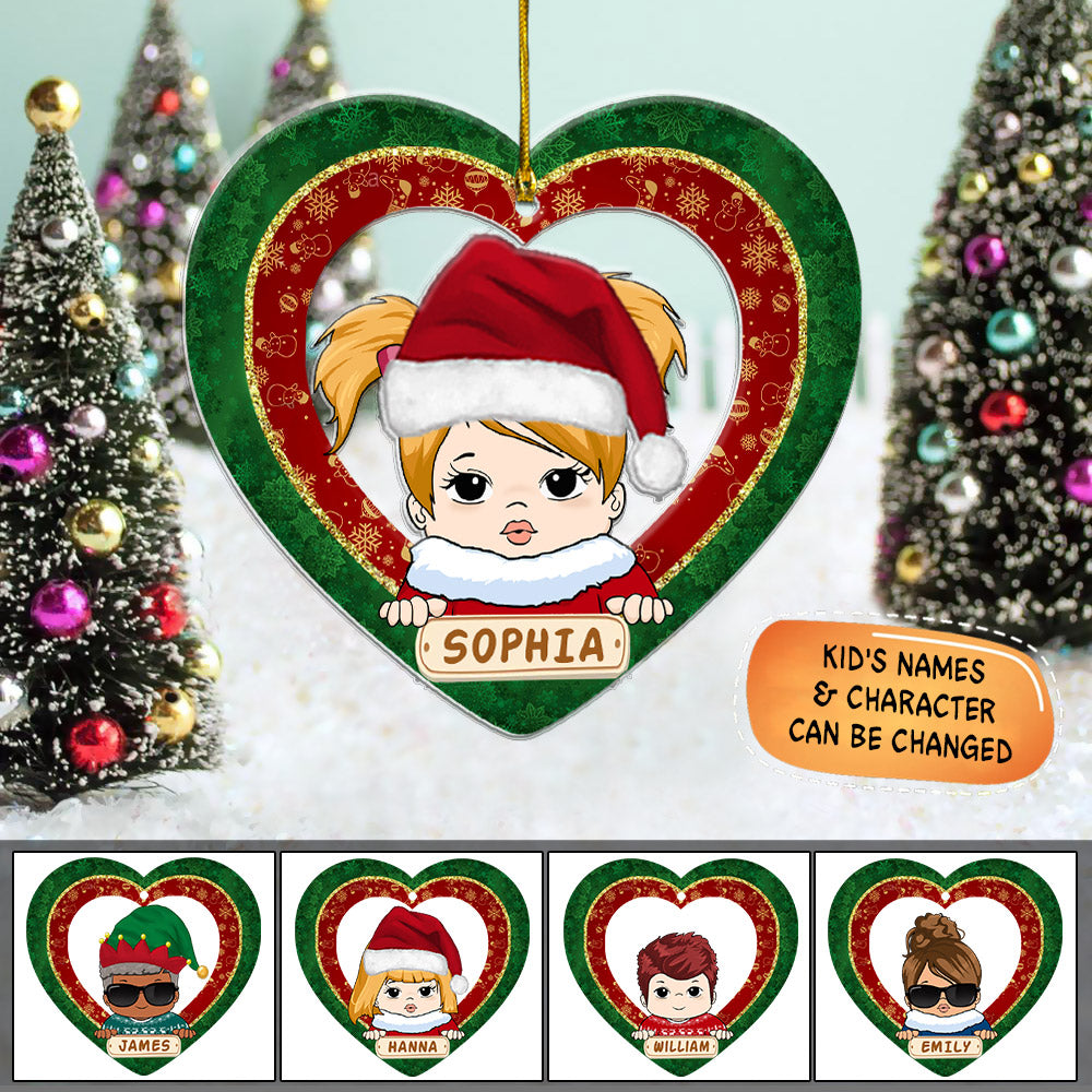 Kid Heart shape Ornament, Personalized Christmas Ornament