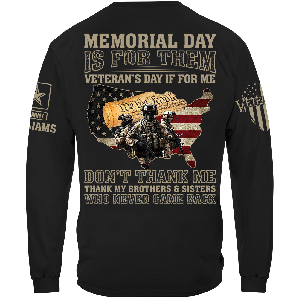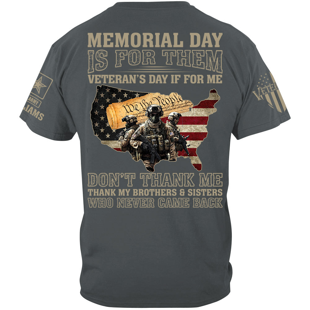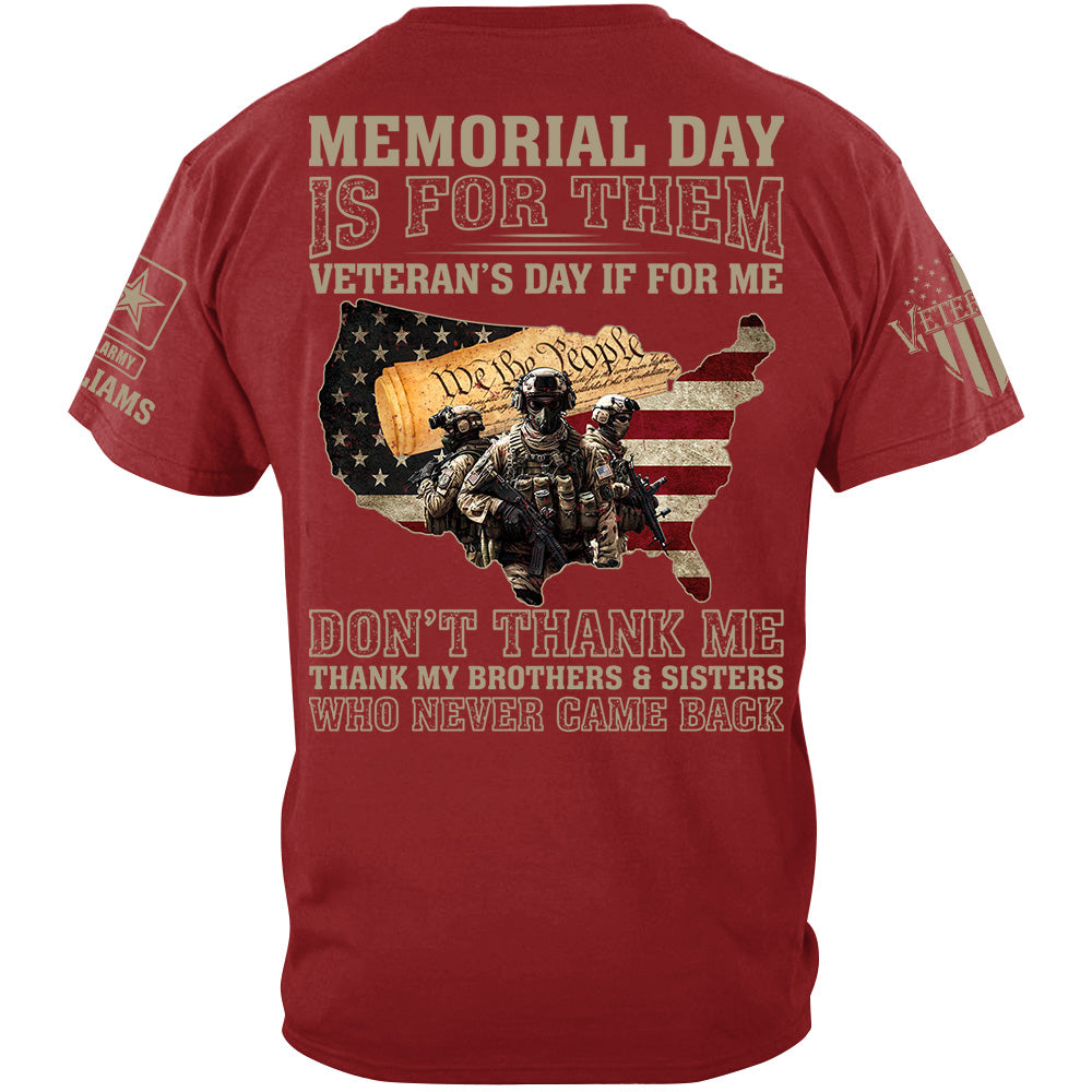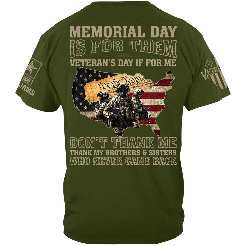 Memorial Day Is For Them Veteran's Day Is For Me Thank My Brothers Sisters Veteran Day Shirt Gift For Veteran H2511 Trna