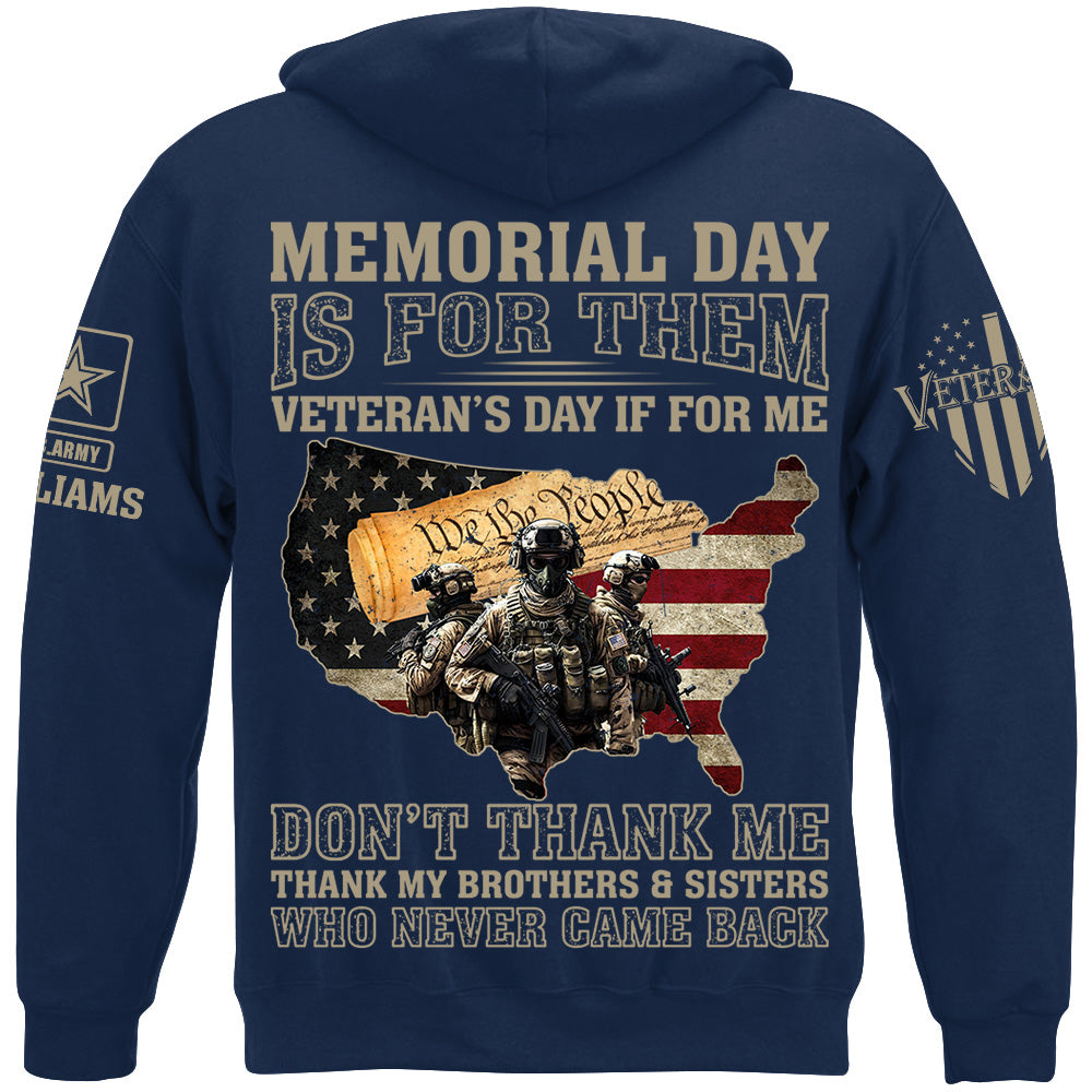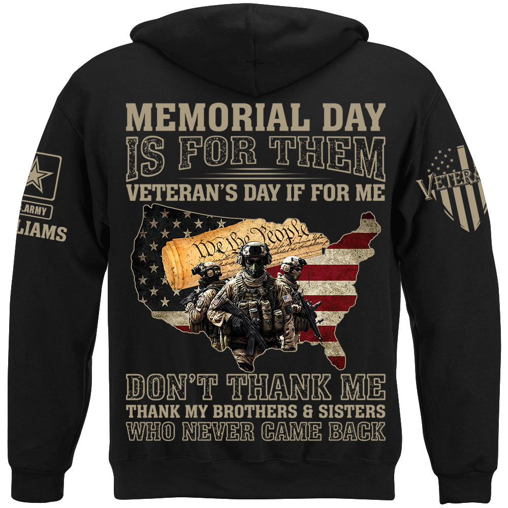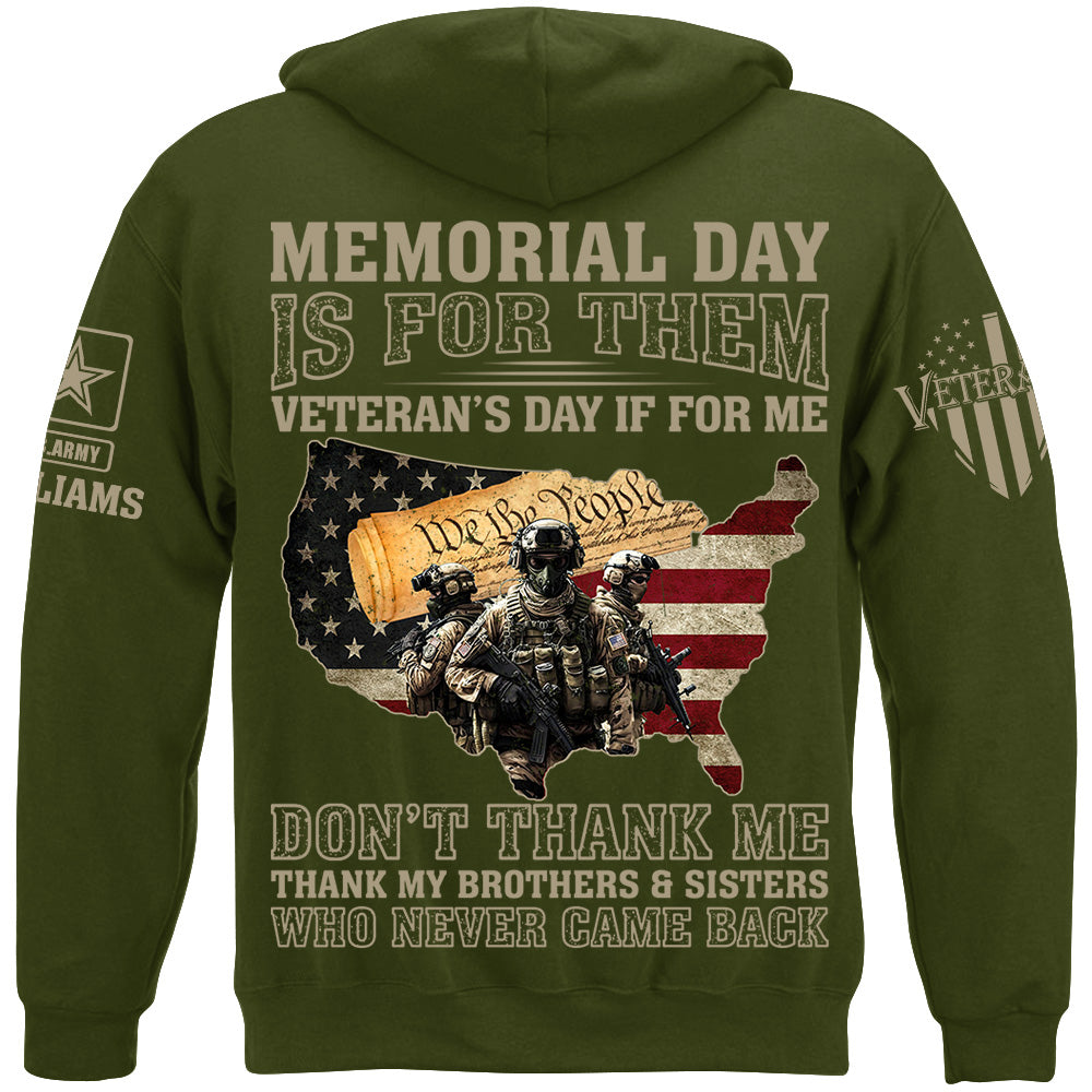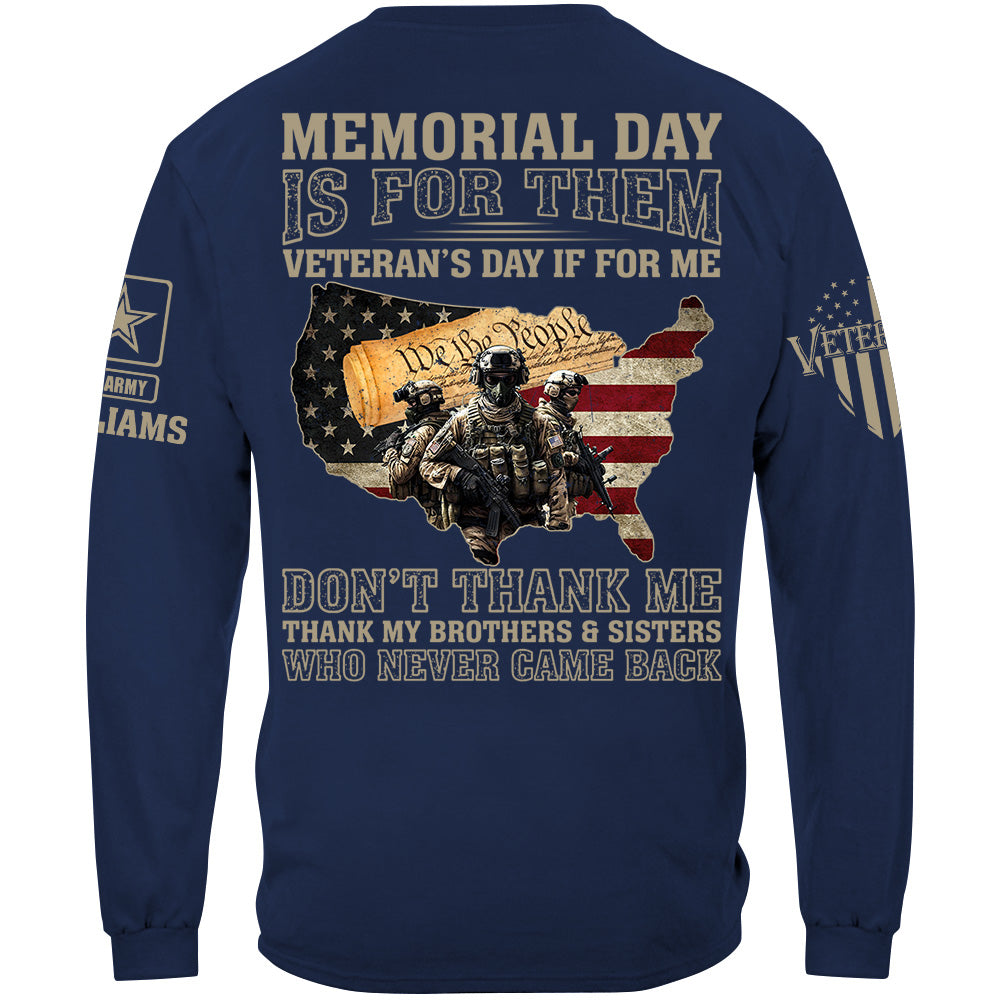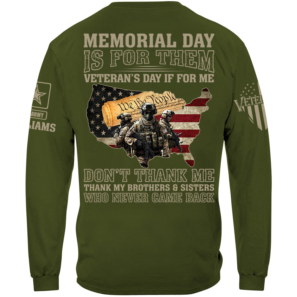 Memorial Day Is For Them Veteran's Day Is For Me Thank My Brothers Sisters Veteran Day Shirt Gift For Veteran H2511 Trna