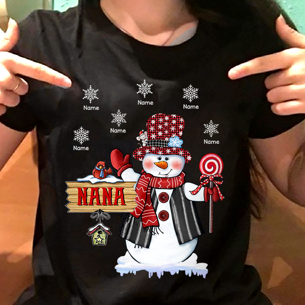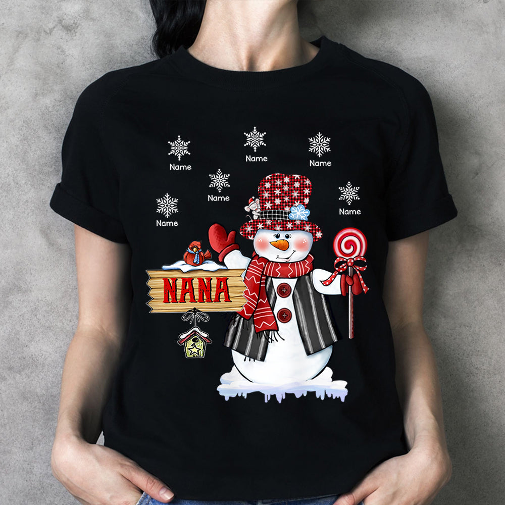 Nana Snowman With Snowflake Christmas Personalized Shirt For Grandma,
