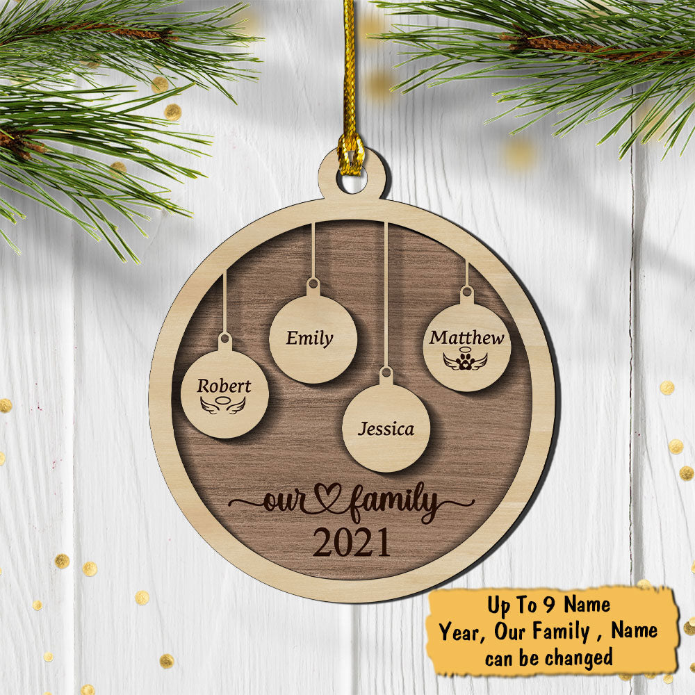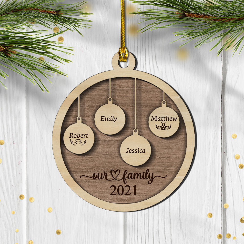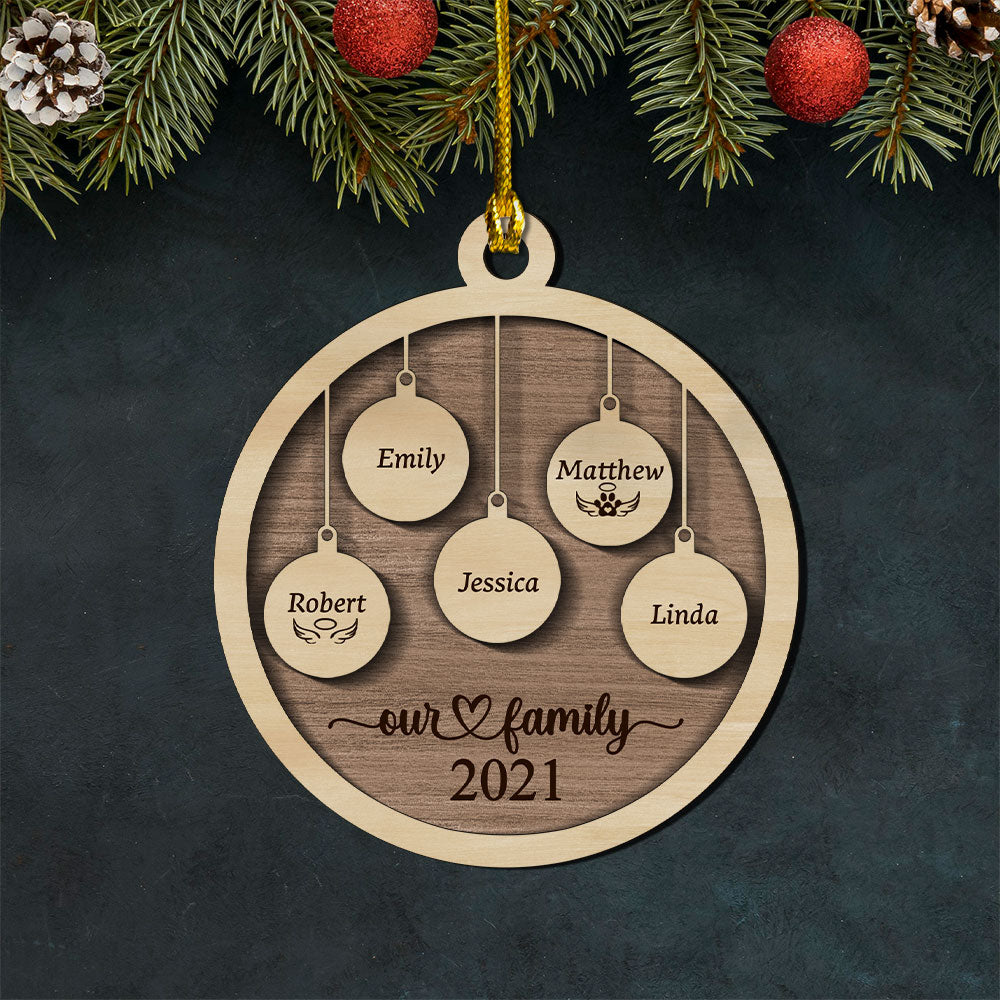 Personalized Family Christmas Ornaments, 2021 Wood Xmas Ornament With Family Member Names, Custom Holiday Ornament