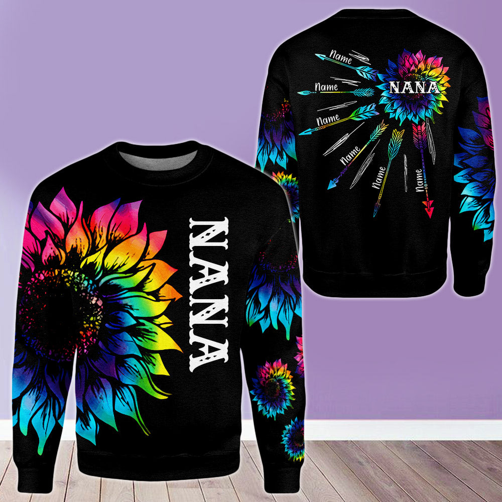 Personalized Grandma with Kid Name Tie Dye Sunflower Hoodie