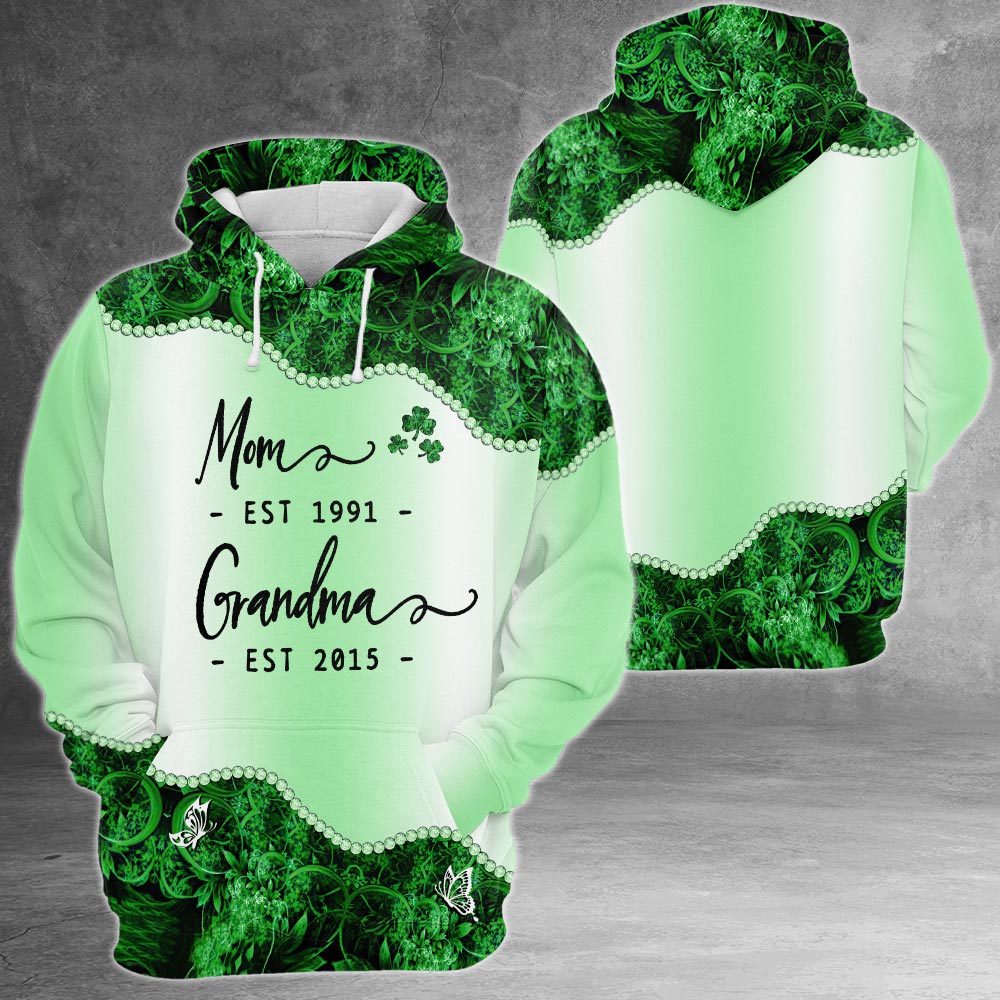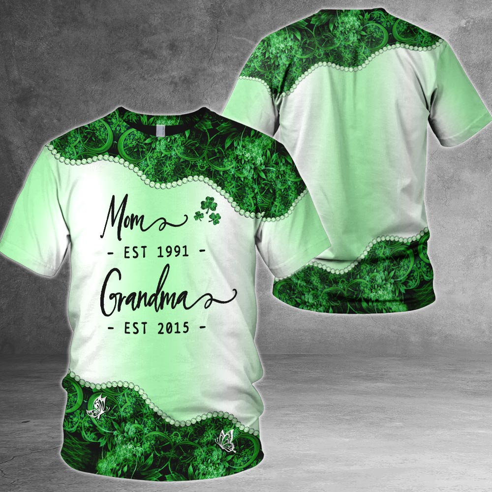 Personalized Mom Est Grandma Est St. Patrick's Day All Over Print Shirts For Grandma Nana Gigi