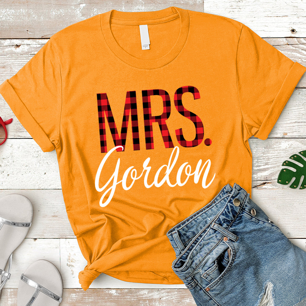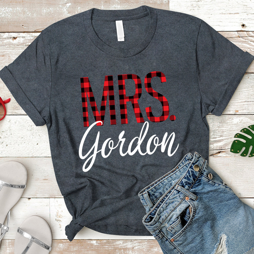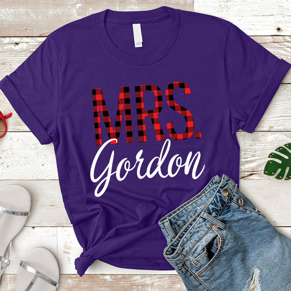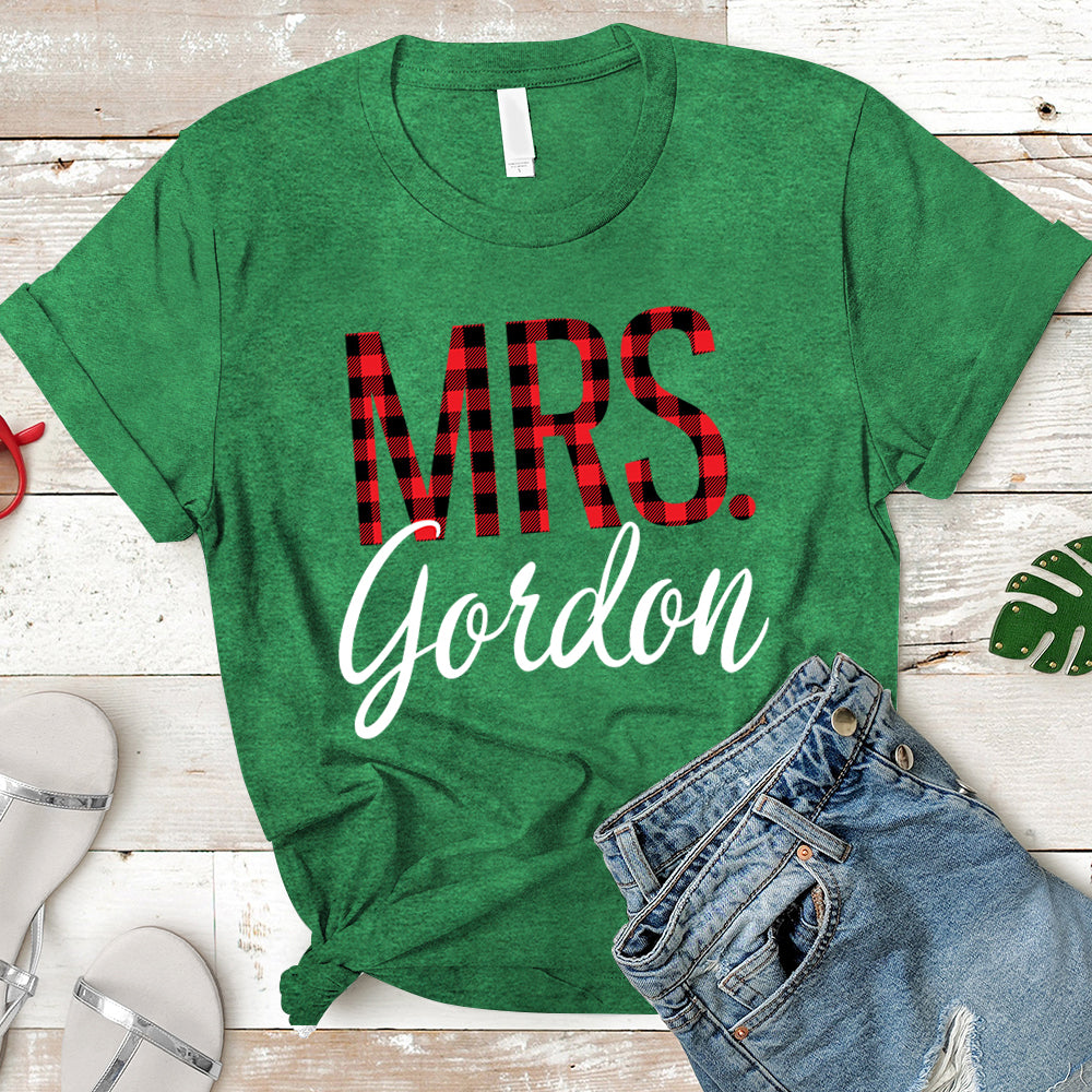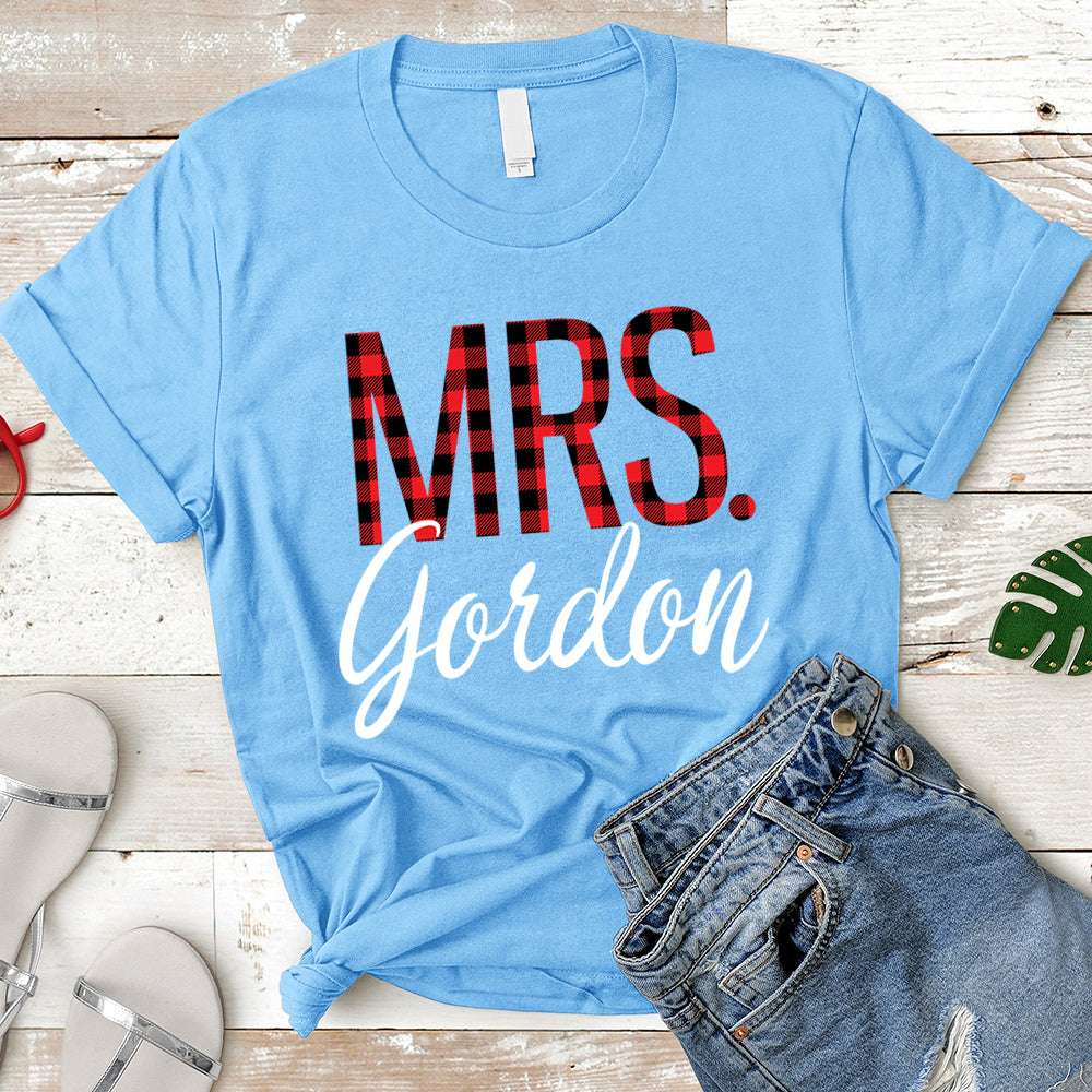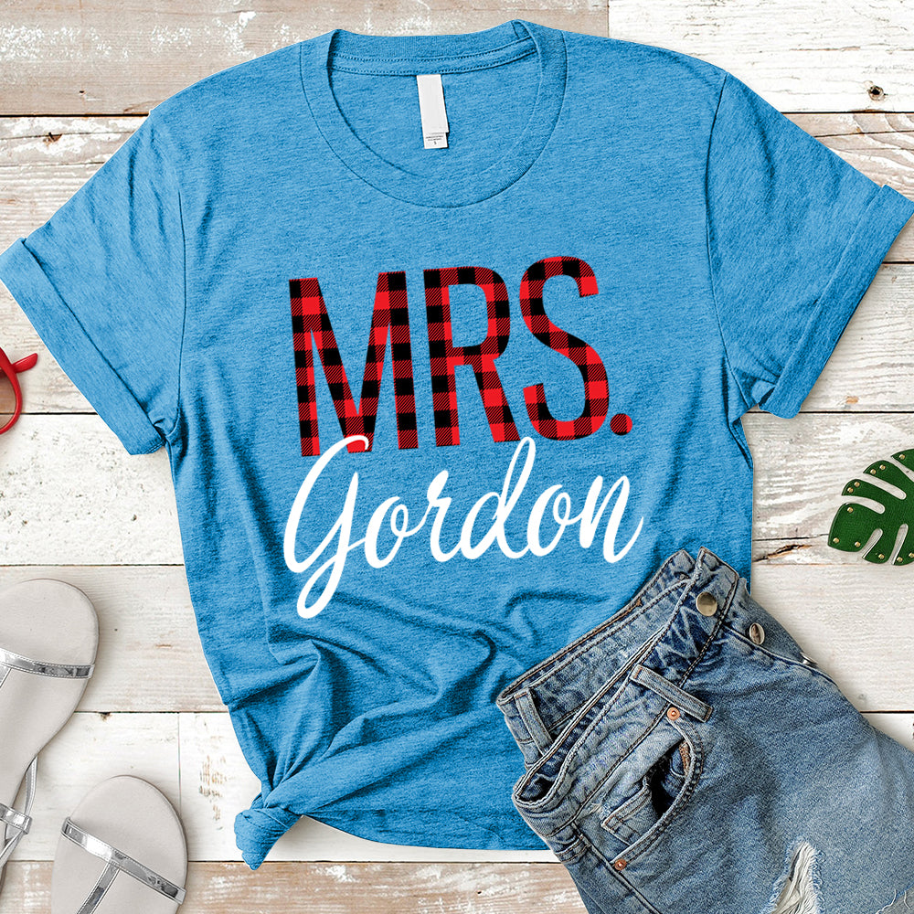 Personalized Mrs./Last Name Relaxed Boyfriend Personalized Last Name Boyfriend Buffalo Plaid Shirt / Caro