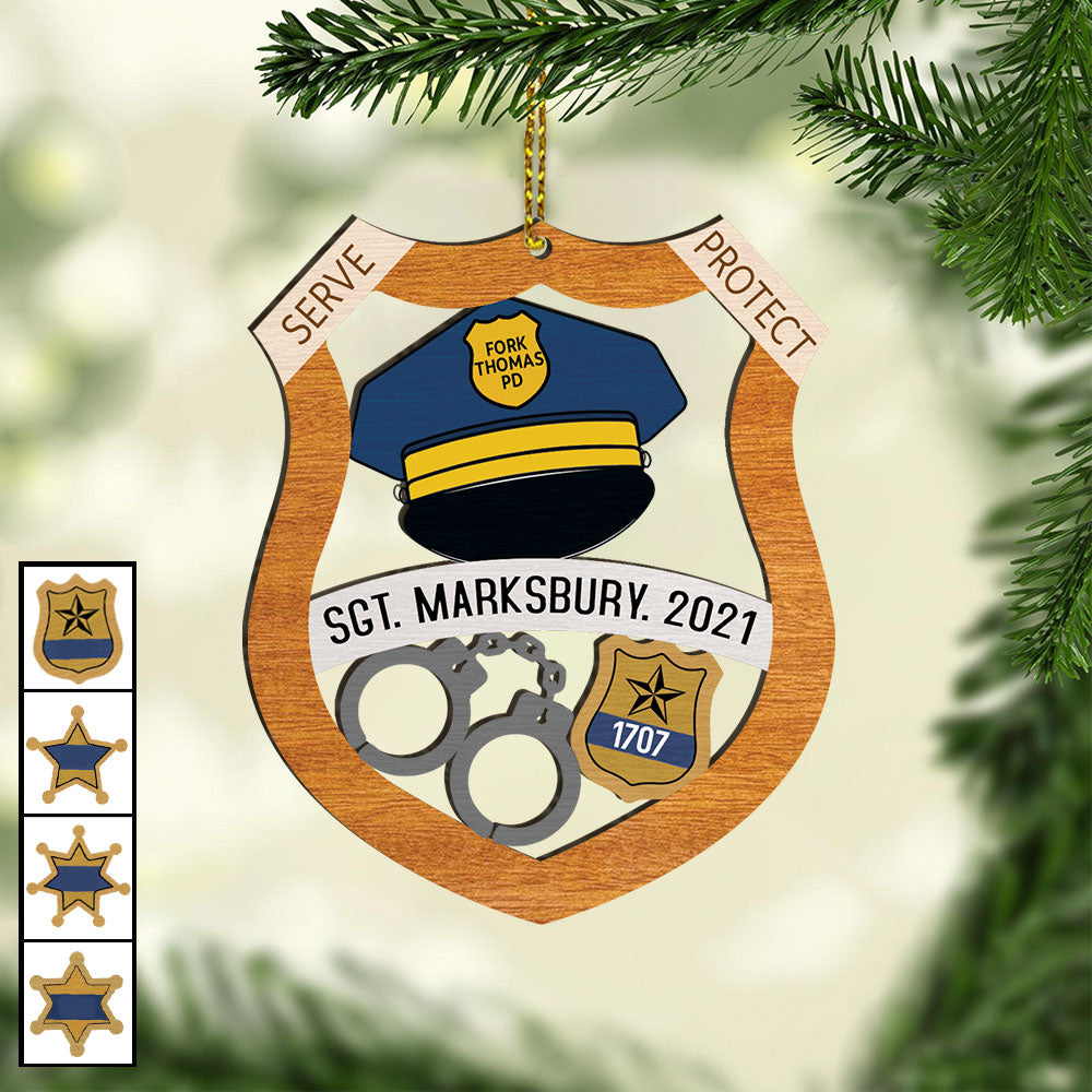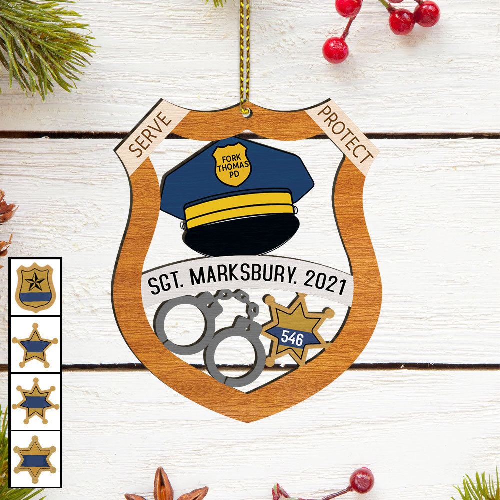 Personalized Police Christmas Ornament-Wood, name, year, rank, badge number, department Laser Cut Gift For Xmas TRHN, Made By Wood And One Side Print