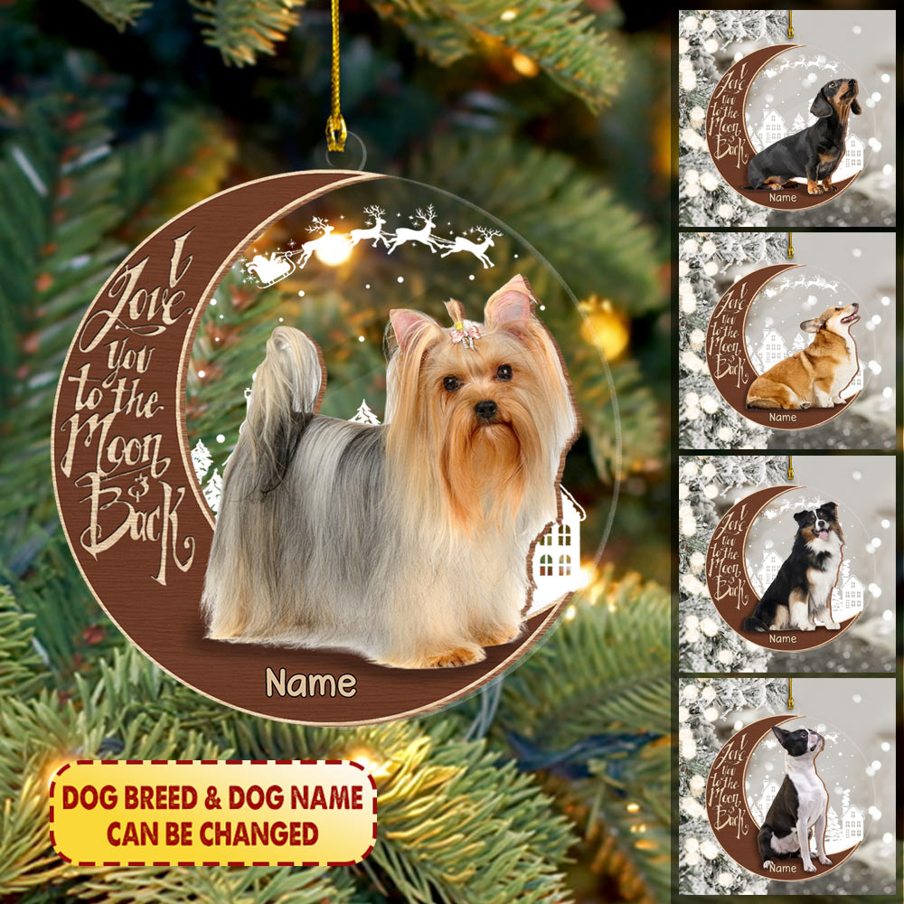 Yorkshire Terrier Sitting And Happy On The Moon 2 Layer Mix Wood And Acrylic Ornament